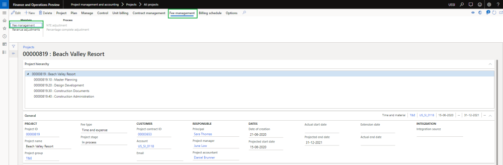 Fee management tab is added on the Projects form to manage the functionality for projects along with subprojects.