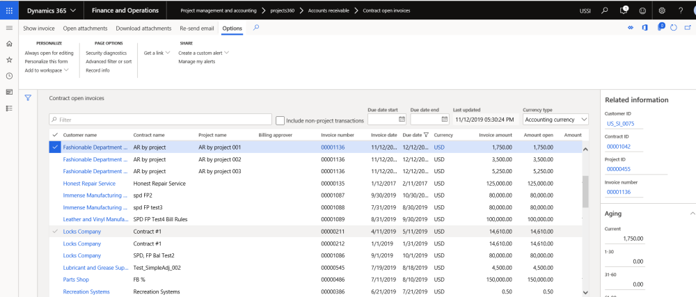 Project management and accounting > projects360 > Accounts receivable > Contract open invoices.
