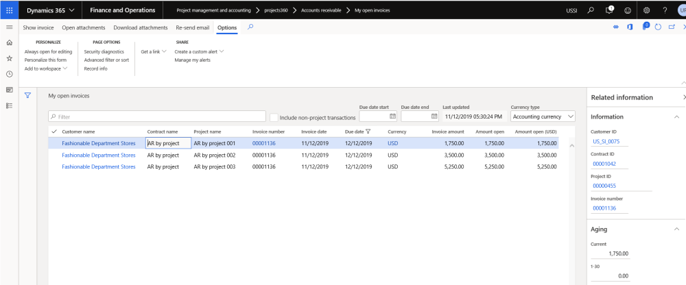 Project management and accounting > Project360 > Accounts receivable > My open invoices.