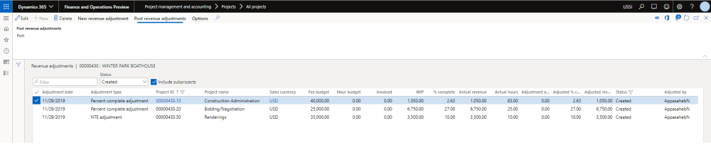 - New revenue adjustment capabilities were added allowing us to adjust the accrued revenue getting the correct total revenue as well as WIP and % complete.