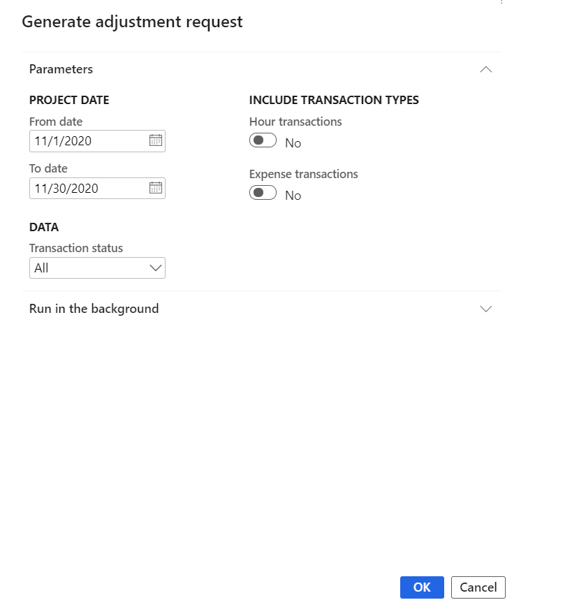 New form is introduced to view all the created adjustment request for a project. This form helps to generate adjustment request and view the status of the same. This form provides the details of all the generated requests for each project and can define the adjustment action to be taken on each transaction and can also provide any comments by the project manager.