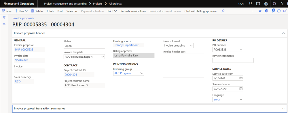 There have been several modifications done to the Project Invoice proposal form for this feature.