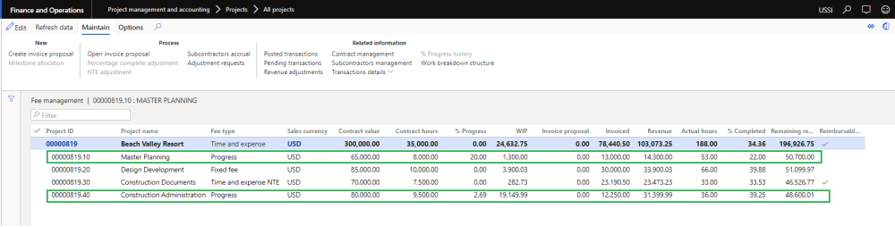 Revenue adjustments capabilities has been built on top fee management allowing us to adjust the accrued revenue getting the correct total revenue as well as WIP and % complete at given point of time. There could be scenarios where the actual work completed is more or less than then what’s been already billed to the client, in this case you can use the revenue adjustment capabilities bring back the project values to what’s expected.