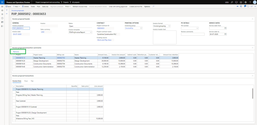 With introduction of this feature, users can quickly remove the selected projects and their respective transactions from within the invoice proposal. This will help in review and modify the invoice proposal quickly and hassle free.