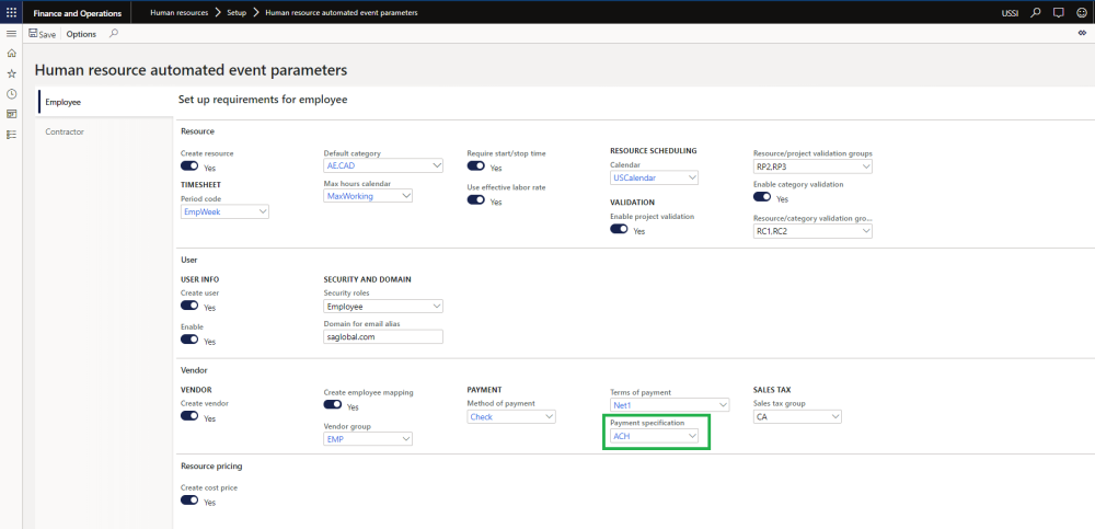 Now using HR automated events you can set the ‘Payment Specification’ on vendor creation automatically while adding a new employee/contractor in the application. The default value can be specified on the HR automated parameters and same is updated on the vendor record.