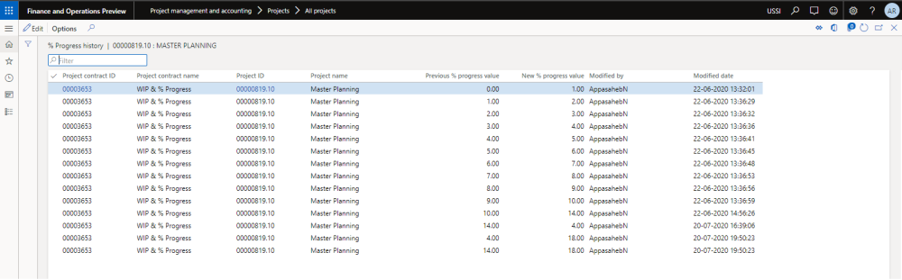 A new functionality is introduced to track the % progress field update on the fee management and billing schedules lines form. This will help in keeping track of when the last update to the % progress is made and who made the changes. Capturing this information also helps in generating the invoices using the billing schedules functionality