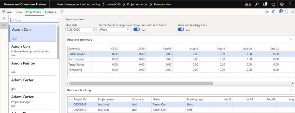 We have introduced Resource view button on the Project view form which displays all the resource for the selected project. Project view button on the Resource view form displays all the projects where the resource is assigned to. This feature is not controlled by the parameter.