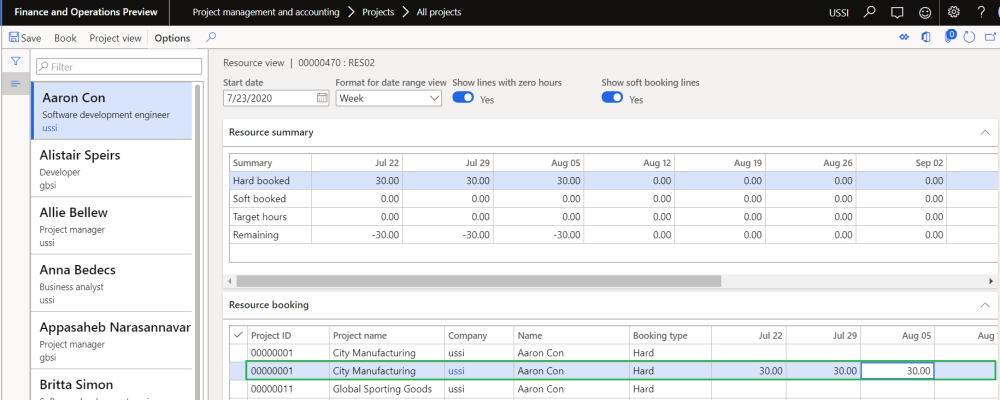 Now bookings on the resource forecast form will be sorted by project ID. This helps users to view all the resource forecast records for a project including subprojects. This feature is not controlled by the parameter.
