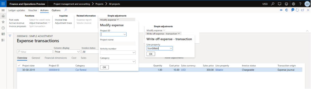 This feature provides user the ability to perform adjustments on the expense transactions through transaction inquiry. User will be able to modify expense, write off expense fully. This feature is controlled by the parameter.