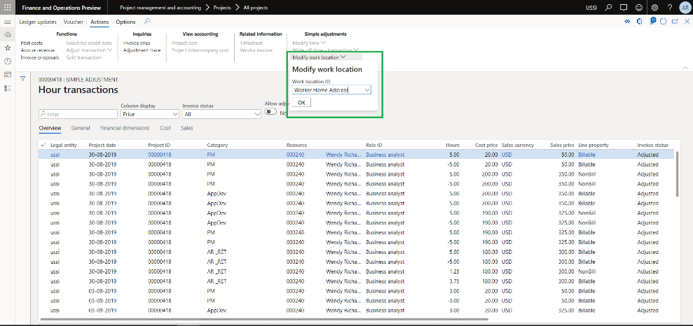 This feature provides user the ability to perform adjustments on the hour transactions through transaction inquiry. User will be able to modify work location. This feature is controlled by the parameter.