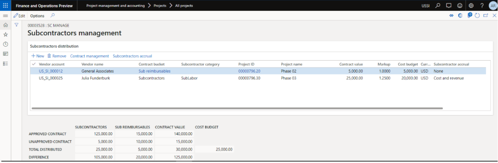 Subcontractor management ensures consistency in how firms manage their subcontractors. This new feature enhances the existing “Contract management” experience allowing Project Accountants and Project Managers to distribute contract buckets across multiple subcontractors/vendors.