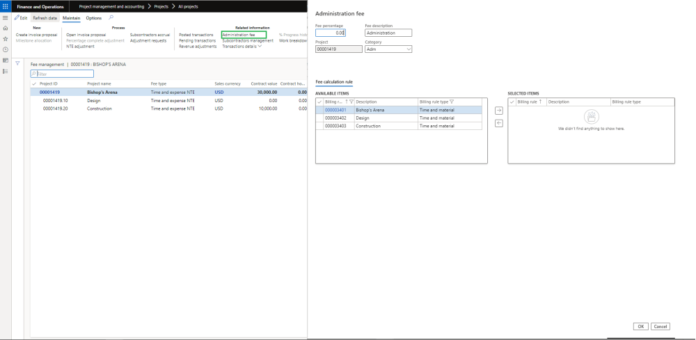 A new billing rule will be automatically created invoicing administration fees to clients. Also, administration fees will be recalculated after any simple adjustment is posted while the invoice proposal is still open.