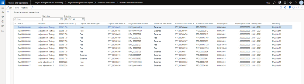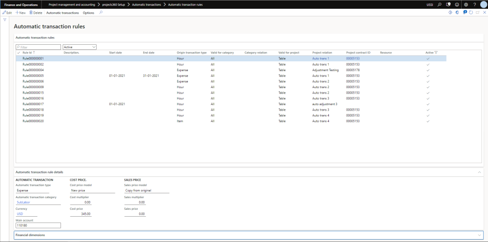 This new feature provides the ability to create project automatic transactions. Different rules can be setup to generate automatic transactions. Automatic project transactions will be created based on those defined rules either through manually or batch process.