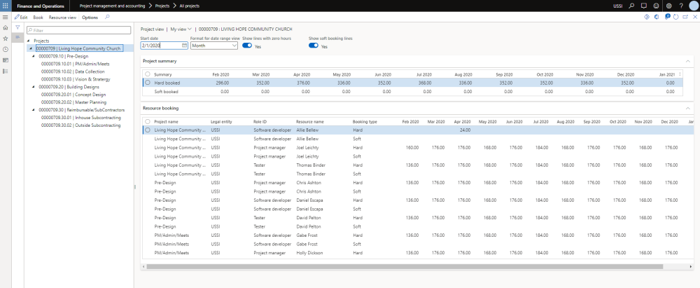 Project view form has been converted into a tree view. The data on the subprojects is rolled-up to parent project. Also the default sorting has been set to Project ID and then resource name.