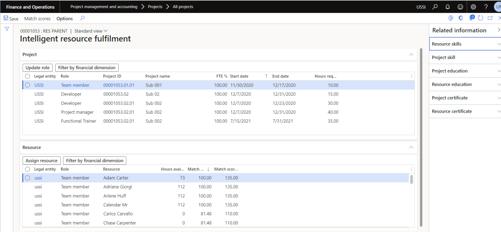 - Project and management accounting > projects360 > Project resources > Intelligent resource fulfillment form.