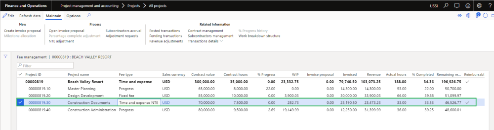 Revenue adjustments capabilities has been built on top fee management allowing us to adjust the accrued revenue getting the correct total revenue as well as WIP and % complete at given point of time. There could be scenarios where the actual work completed is more or less than then what’s been already billed to the client, in this case you can use the revenue adjustment capabilities bring back the project values to what’s expected.