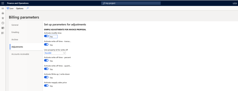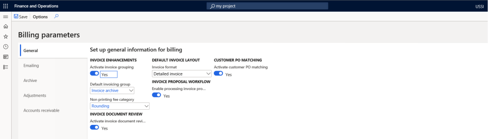 In the billing parameters form, we have added all the existing invoice related fields including projects360 and standard fields for easier access to the user.