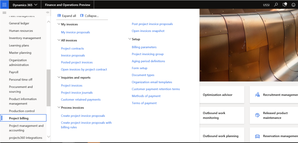 | Create project invoice proposal with billing rules | Existing menu item pulled from project management and accounting module |