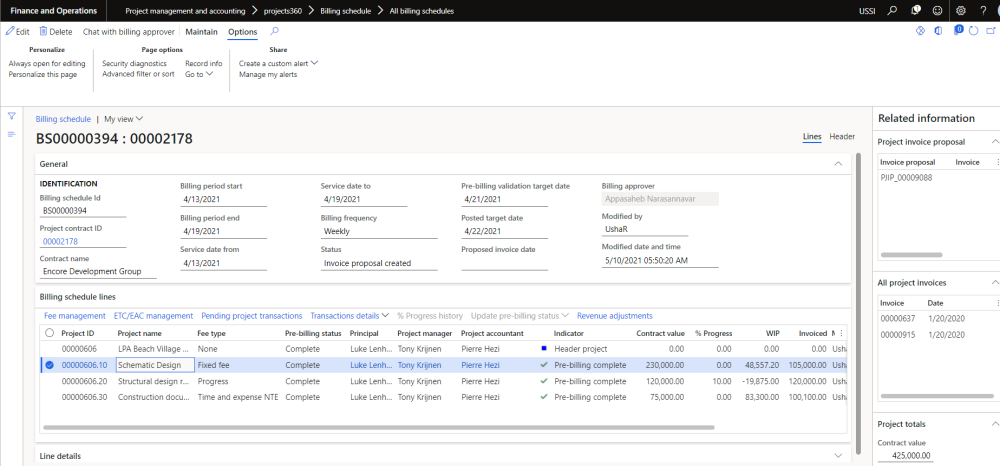 | Note – My billing schedule form and lines will displays where the logged in user is Principle, Project manager, Project accountant for a project. |