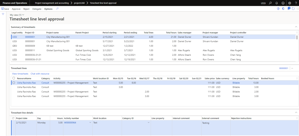 Go to Project and Management accounting > projects360 > Timesheet line level approval