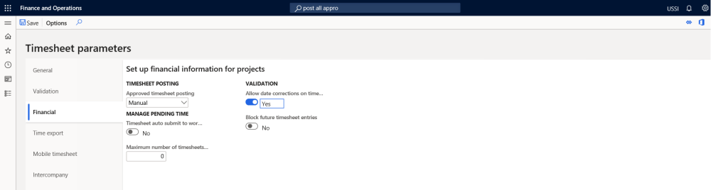 | Post all approved timesheets | Existing menu item pulled from project management and accounting module. |
