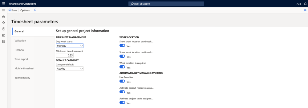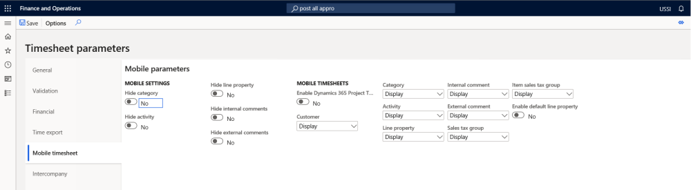 In the timesheet parameters form, we have added all the existing timesheet related fields including projects360 and standard fields for easier access to the user.