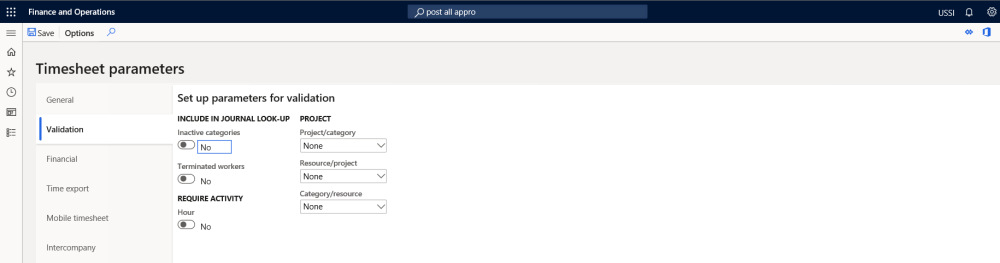 | Timesheet parameters | New form where all the related parameters are pulled in. Refer below section for more details |