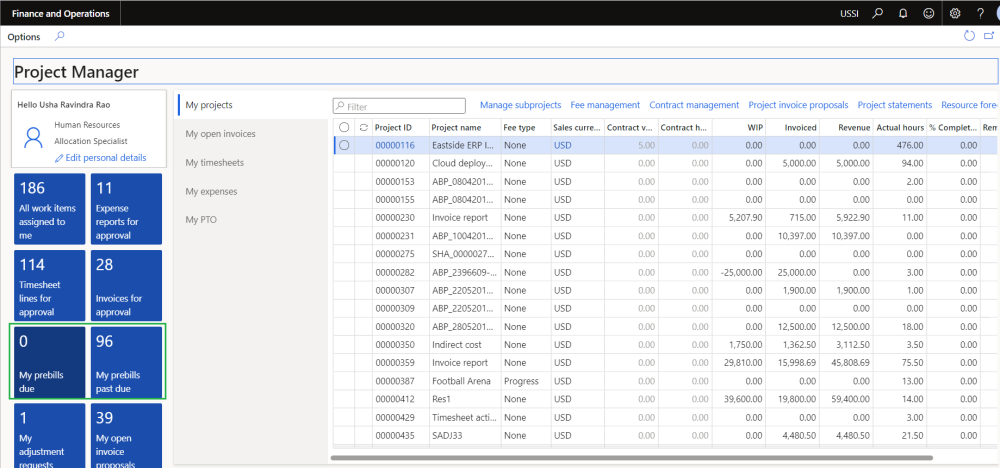 Now with this new enhancement, “My prebills dues” and “My prebills past due” buttons will be available on the project manager workspace only when the “Activate billing schedule” parameter is marked.
