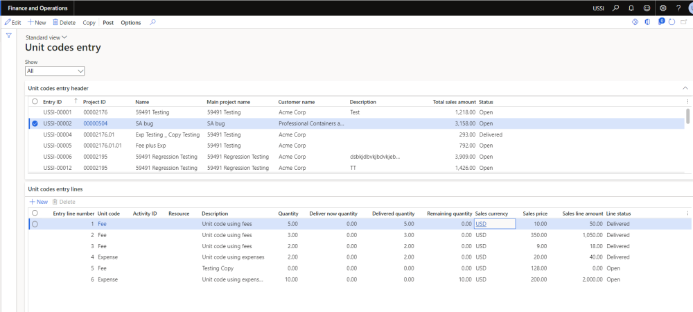 This new feature allows users to enter “Unit codes” for specific project/sub-project for billing purposes directly through a newly developed form “Unit codes entry”. Based on the “Unit codes” and “Deliver now quantity” entered by the user on the form, the system automatically creates expense journals and/or fee journals for billing purposes. Users are provided with the option of either posting “Deliver now quantity” or all the “Remaining quantity”.