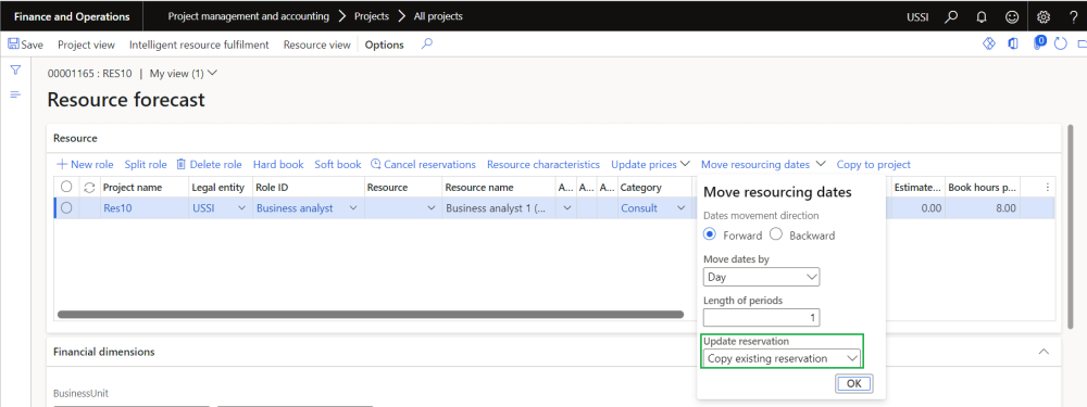 “Move resourcing dates” feature was enhanced with new option “Copy existing reservations”, which will allow users to move the existing booking/reservations while moving dates from the “Resource forecast” form.