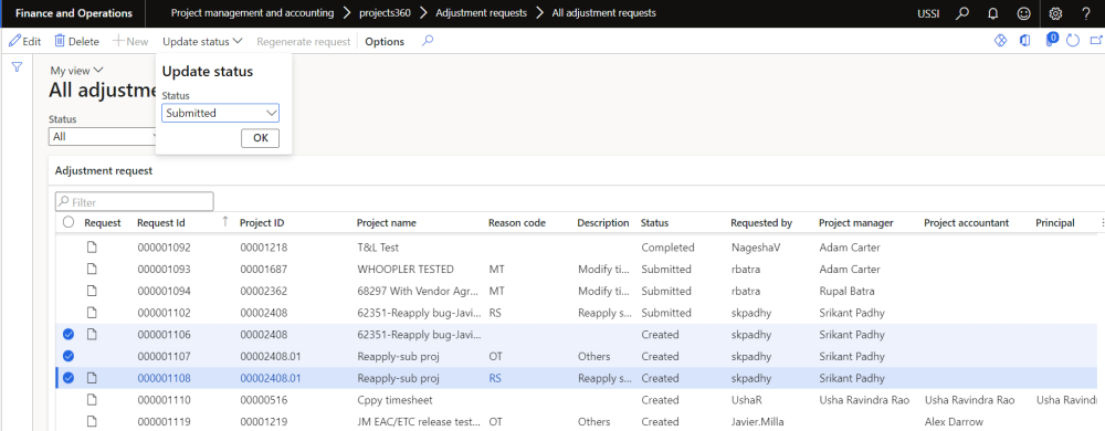 In this enhancement, users will be able to select multiple adjustment request with same status and update those to a new status at the same time in one step.