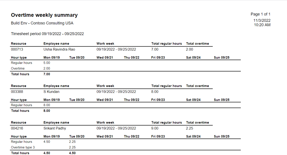 This new feature helps users to view the overtime details through a weekly summary report which provides details of “Regular hours” and “Overtime hours”. It also provides the information of “Total regular hours” and “Total overtime hours” for each resource.