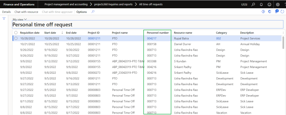 In this enhancement, new field “Personnel number” on the “All time-off request” inquiry for better identification of the resource.