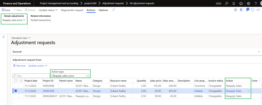 In this enhancement, new action type “Re-apply sales price” is added in “Adjustment request” feature. Users will be able to define which transactions require the action “Re-apply sales price” as well as execute the simple adjustment process directly from the same “Adjustments request” form.