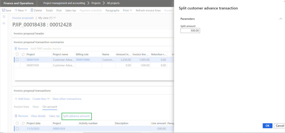 In this enhancement, when transactions are removed in “Invoice proposal” form, any related automatic transactions will be automatically removed as well.