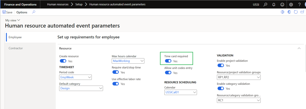 In this enhancement, new parameter “Time card required” is added on the HR automated events parameters which defaults when the new employee is created.