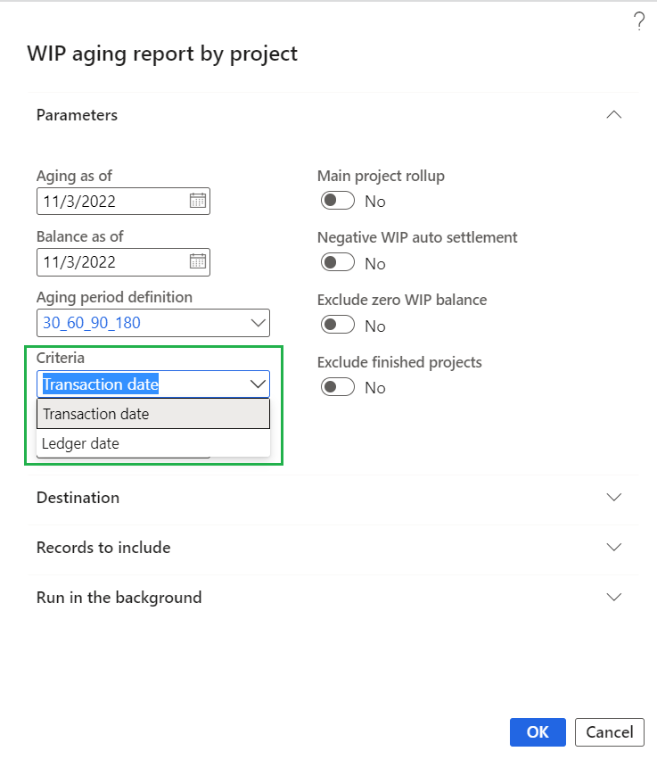 “WIP aging report” was enhanced to allow calculating the WIP based on either “Transaction date” or “Ledger date” by configuration.