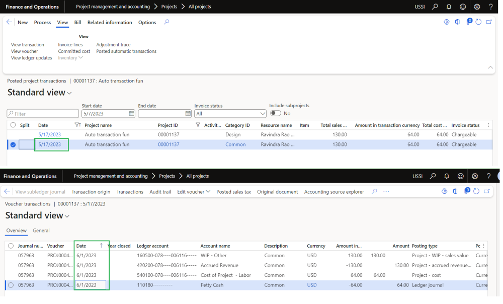 In this enhancement, users now have the ability to post automatic transactions in the next open period when the ledger period is set as None for the project module. This functionality is enabled when the “Automatically set accounting date to open ledger period” parameter is turned on in the standard project management and accounting parameters. It eliminates the need for manual intervention to set the accounting date or adjust the ledger period, saving time and effort for users.