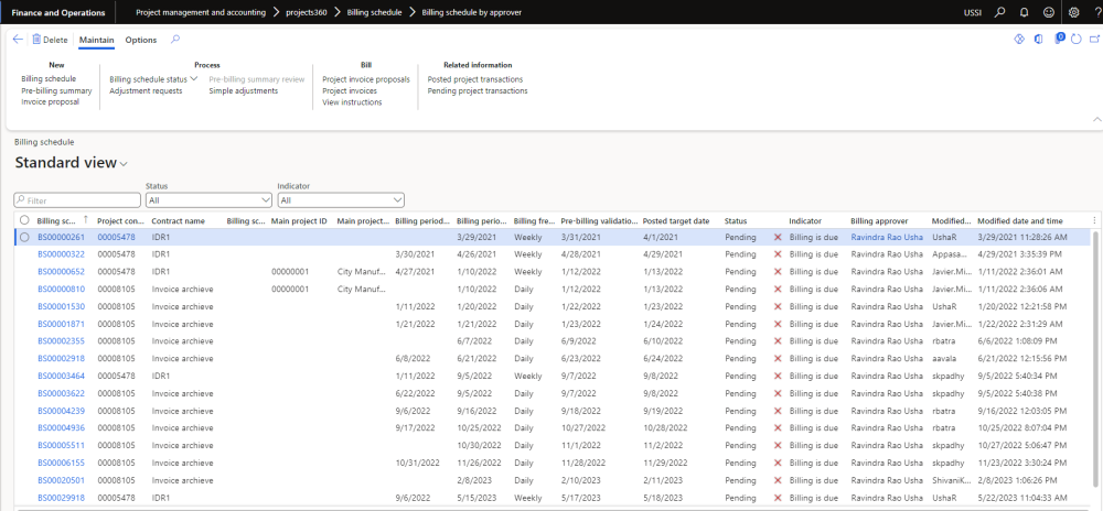 In this enhancement, a new form is introduced specifically for billing approvers. This form consolidates all the billing schedules they are responsible for, providing them with a comprehensive overview in a single interface. This streamlined view enables billing approvers to swiftly assess the billing schedules and take prompt actions and decisions. With this enhanced form, billing approvers can efficiently manage their responsibilities and expedite the billing process.