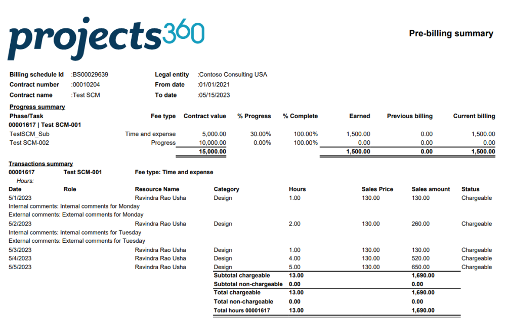 New button is introduced to generate pre-billing summary where a report will be created showing a summary of % progress and transactions for all the projects in the structure from “Billing schedule” form. This report will be available for the review where users will be able to highlight, makes notes, corrections or any edits.