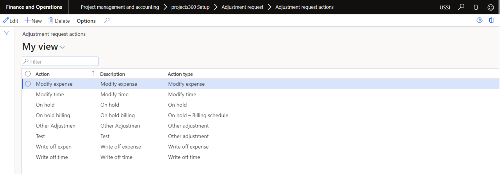 Go to Project management and accounting > projects360 setups > Adjustment request > Adjustment request actions.