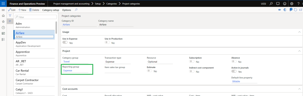 Category reporting groups can be configured to use this information for reporting purpose through either SSRS or PowerBI reports. In this form, you can associate the project categories to the reporting groups. Once you associate a project category to a reporting group, the same information can also be seen on the project category form as well as there is a new field called reporting category introduced on the it.