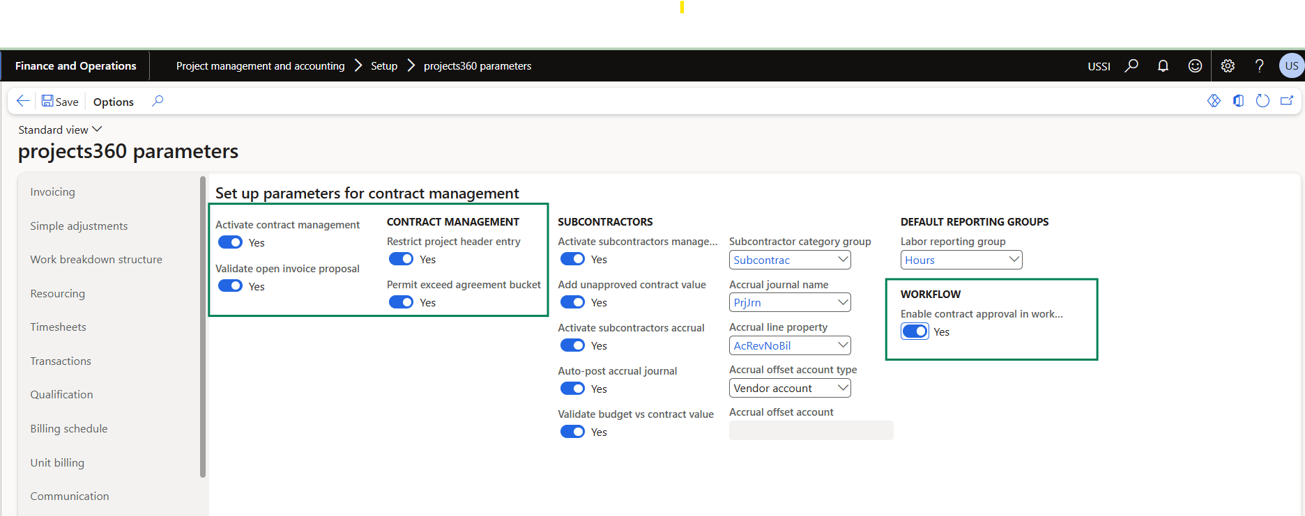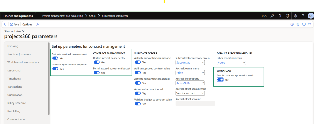 There is a new parameter added under the projects360 parameters to activate this feature. Once activated, the contract management menu’s are displayed on the project contracts and projects form.