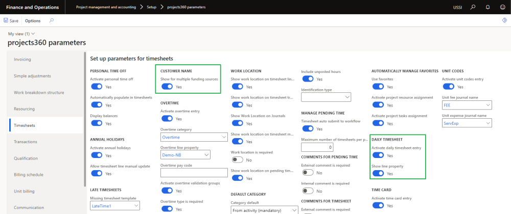 On projects360 parameter form, under Timesheets tab, a new parameter “‘Activate daily timesheet entry” has been introduced to enter daily timesheet and submit the timesheets. User needs to set the ‘Activate daily timesheet entry’ field value to ‘Yes’ in order to use this feature.