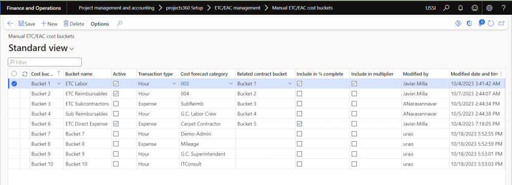 New form is introduced to define Manual “ETC/EAC cost buckets” which allows us to break down the cost ETC in different buckets and we can track it independently. These cost buckets” can be linked to “Contract buckets” and “Reporting groups” and will be displayed in “ETC/EAC management” view within “Fee management” form. The information entered for each bucket will be stored as independent forecast transaction.