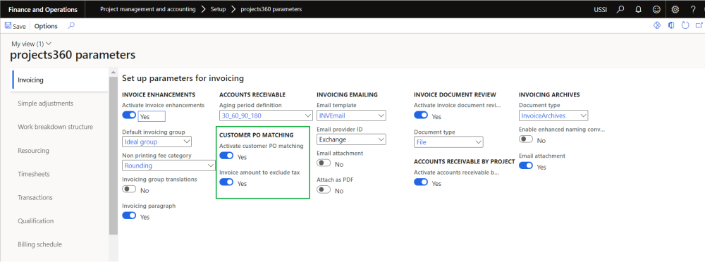 On projects360 parameter form, under Invoicing tab, a new parameter “Customer PO Matching” has been introduced to control the customer PO matching feature. When the user makes the value of this checkbox as ‘Yes’, the customer PO Matching is activated.