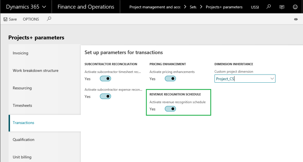 To activate the revenue recognition feature set the ‘Activate revenue recognition schedule’ option to Yes.