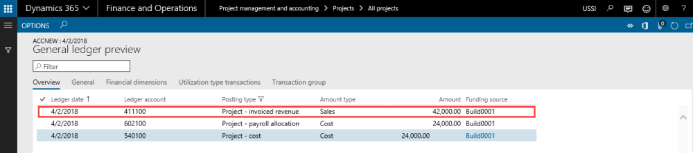 Go to Manage projects workspace >Budgeting tab >Hour forecasts > General ledger preview