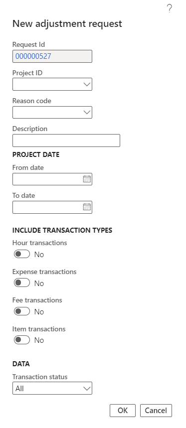| Project ID | Displays the project Id for which the adjustment request is created. |