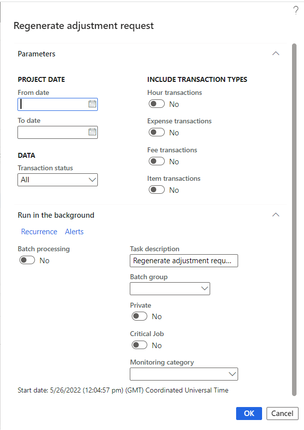 | Main project name | Displays the main project name for which the adjustment request is created. |